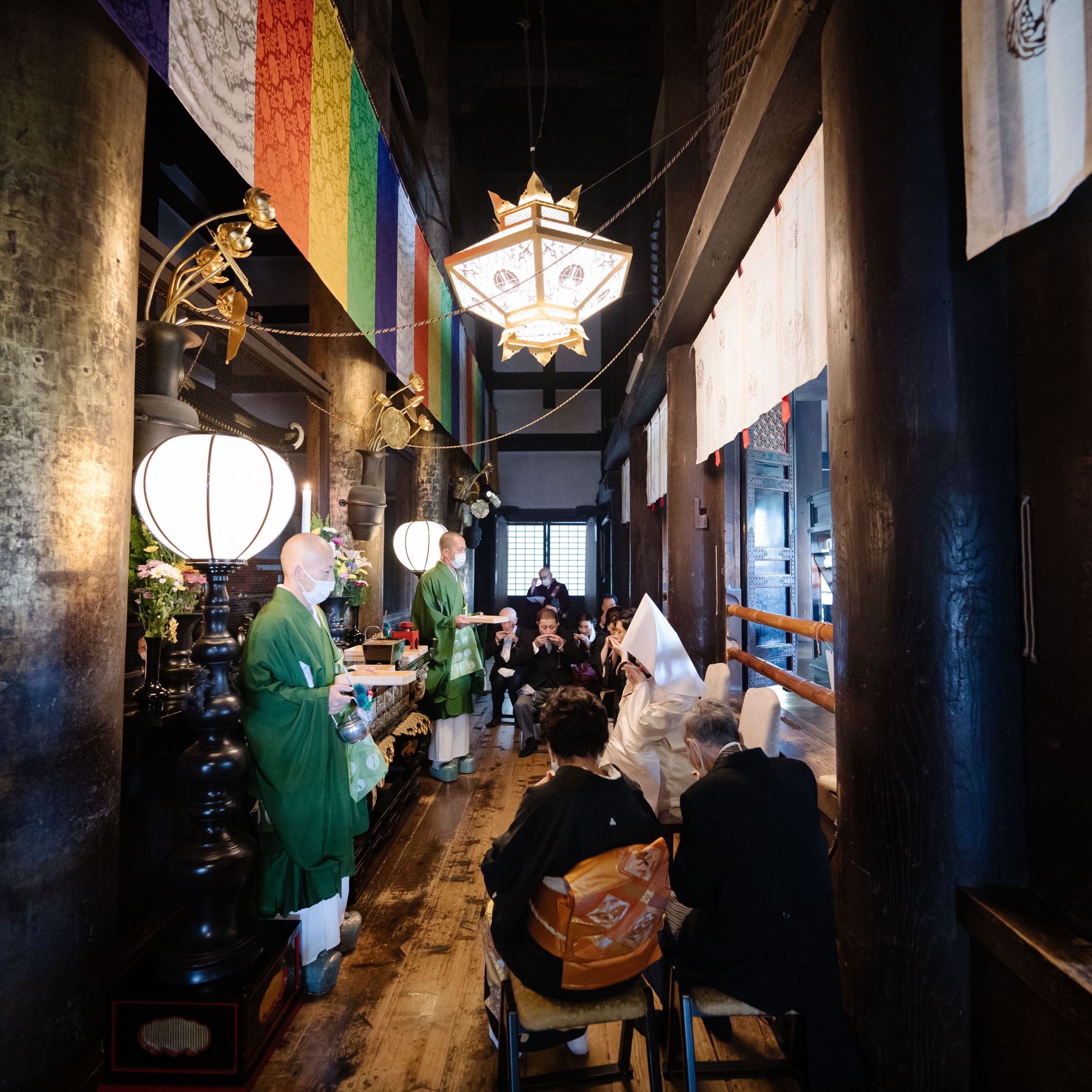 清水寺様での挙式のはじまり、新郎新婦の心に寄りそう結婚式が語られています。大西英玄様による心に澄み渡るメッセージ映像。